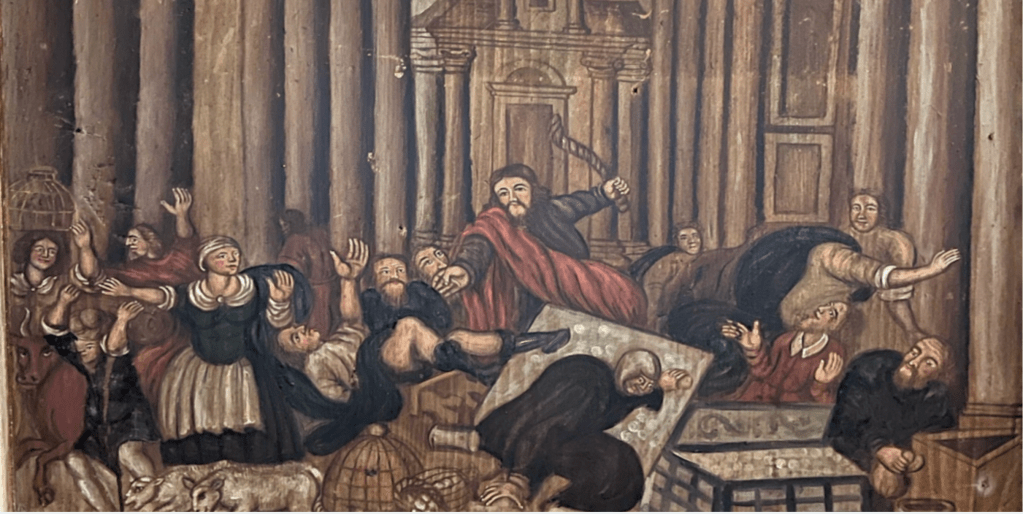 Markus und Lukas variieren das Geschehen des Hinauswurfs zusätzlich auf ihre Weise. Sie schreiben davon, wie Jesus im Tempel damit b e g o n n e n hätte, alle Händler hinauszuwerfen (ἤρξατο ἐκβάλλειν). Diese Wendung lässt uns aufhorchen: Als ob Jesus mit der Austreibung der Wechslerdämonie noch gar nicht fertig geworden wäre? Der Hinauswurf dieser Wichte, welche sich im Tempel offenbar im Laufe der Zeit und ihres Kultes haben einnisten können, ist wohl offenbar in vollem Gange? Und dauere bis in unsere Tage an? Wie dem auch sei: Was nicht in den Tempel und sein Umfeld gehört, gehört tatsächlich hinausgeworfen.